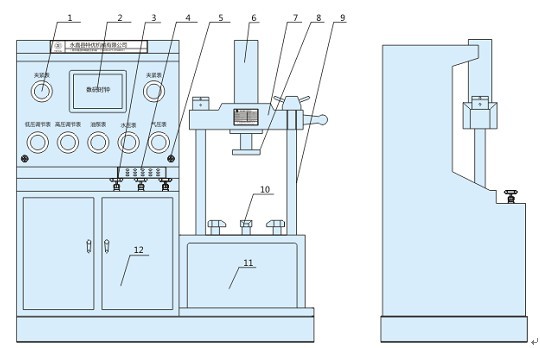 先將供壓泵用的電接點壓力表指針調(diào)節(jié)在所需試壓壓力位置上,關(guān)閉<氣壓開關(guān)>,然后打開<水壓閥開關(guān)>, 按<水泵起動>鈕,即可測試水密封性能的試驗。測試完畢應先打開<泄壓閥開關(guān)>排放壓力后卸下被試閥門。