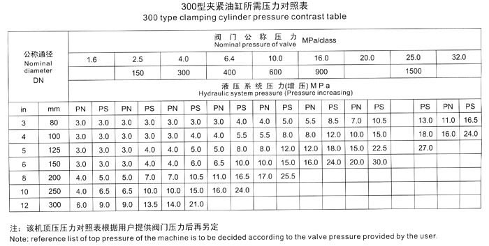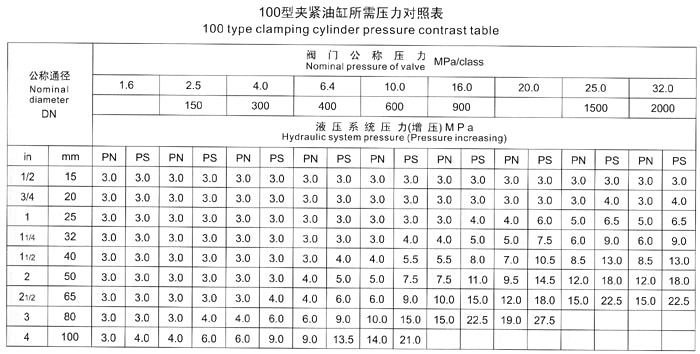 五、測試閥門時,首先根據(jù)被試閥門試驗壓力,要求參照《壓緊油缸所需壓力對照表》中液壓壓緊系統(tǒng)壓力值,進行增壓壓力調(diào)節(jié),嚴禁增壓壓力值超高、防止被試閥門變形損壞。