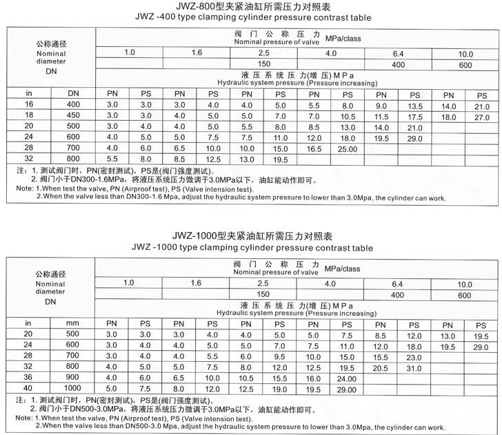 5.8 JWZ-800型 閥門公稱通徑與公稱壓力試驗范圍