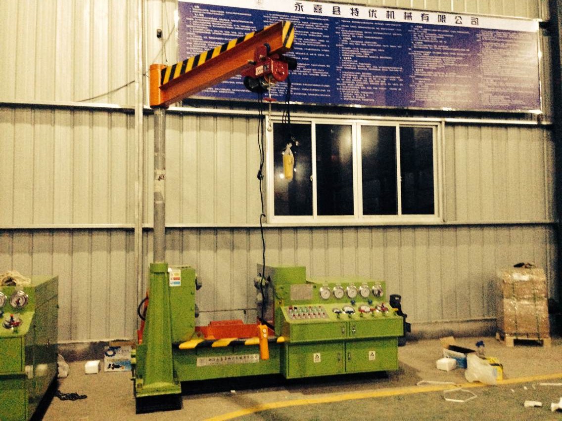 三、接通電源,按油泵啟動按鈕,檢查電機轉(zhuǎn)動方向,是否正確(順時針方向)進行5—1 O分鐘空載運轉(zhuǎn)后,調(diào)節(jié)油泵壓力在5 0MPa進行試機,各種動作,檢查各管路有無泄漏,發(fā)現(xiàn)不良現(xiàn)象,應(yīng)立即停機排除。
