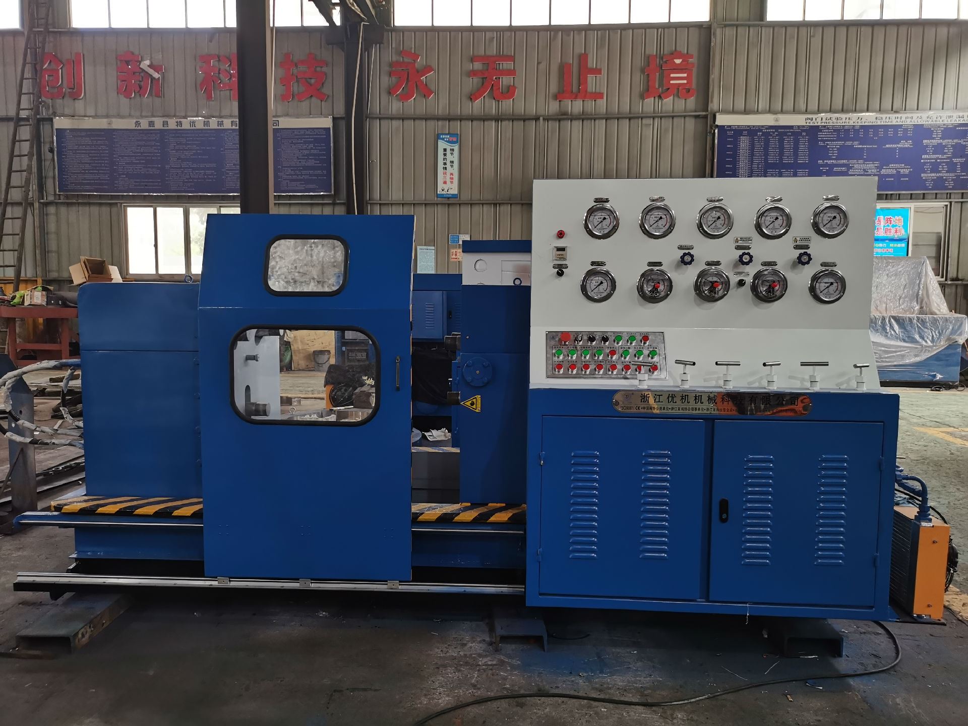 JWZ型閥門液壓測試臺是我公司在積累多年生產(chǎn)閥門檢測設(shè)備技術(shù)的基礎(chǔ)上按照國家GB/T1 3927 — 92《通用閥門壓力試驗》和ZBJl6006-90《閥門的試驗與檢測》的標準規(guī)范要求,自主研發(fā)的新一代抱壓式液壓閥門測試臺并擁有國家技術(shù)專利知識產(chǎn)權(quán),專利號ZL2016 1 0240324.1。