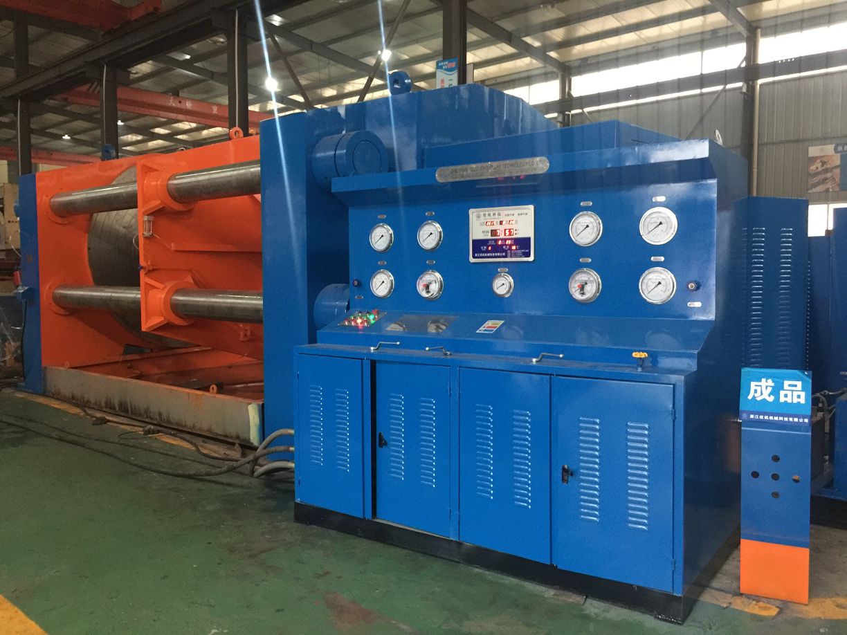 JWT-1200大口徑全焊接球閥試驗(yàn)臺是頂壓式液壓試驗(yàn)臺是我公司吸取 了國內(nèi)外同類產(chǎn)品技術(shù)精華,自主研發(fā)的新一代頂壓式液壓閥門測試臺并擁有國家技術(shù)專利知識產(chǎn)權(quán),專利號ZL2016 1 0240324.1,解決了大型全焊接球閥壓力試驗(yàn)困難、原始試壓不規(guī)范和測試過程的安全隱患問題。它具有結(jié)構(gòu)緊湊,功能完善,性能穩(wěn)定,操作方便等特點(diǎn)。液壓系統(tǒng)采用了卸荷保 壓功能,在連續(xù)開機(jī) 50 小時條件下,液壓油溫升低于 35℃,節(jié)省了測試過程的 能源消耗并提高了設(shè)備使用壽命,是其它同類產(chǎn)品所無法比擬的。JWT型大口徑全焊接閥門測試臺可以廣泛適用于閥門生產(chǎn)廠家、全焊接球閥用戶熱力公司、城網(wǎng)管道工程公司、天然氣管道工程公司等大口徑焊接式法蘭式閥門的殼體強(qiáng)度和密封性能試驗(yàn),試 驗(yàn)壓力介質(zhì)為水、氣、油均可。試驗(yàn)的方式完全符合 GB/T13927-92《通用閥門 壓力試驗(yàn)》和 JB/T9092-1999《閥門的檢測與試驗(yàn)》以及 API 598 和 API 6D 的標(biāo)準(zhǔn) 規(guī)范要求。